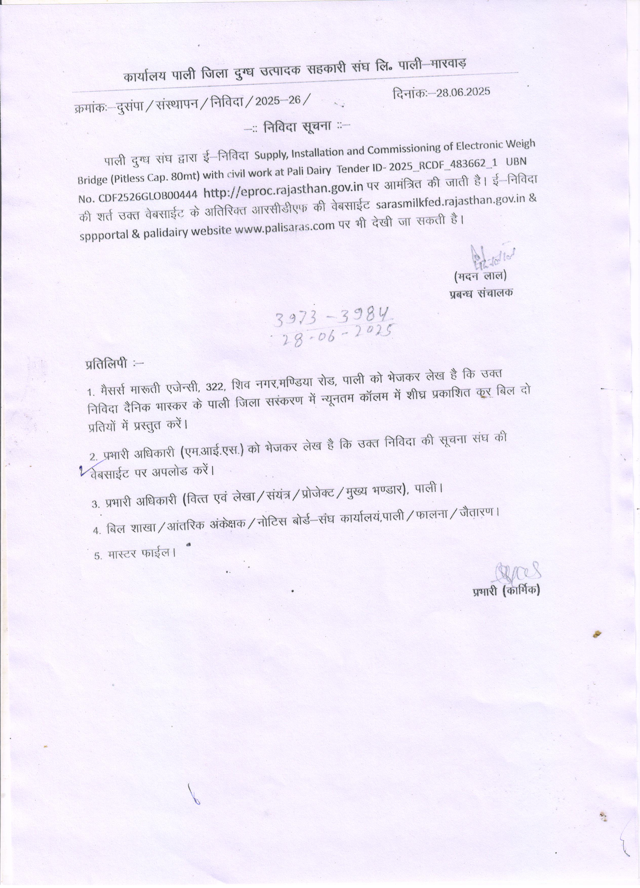 | 15 | ई निविदा 30-06-2025 | 30-Jun-2025 | Click here |